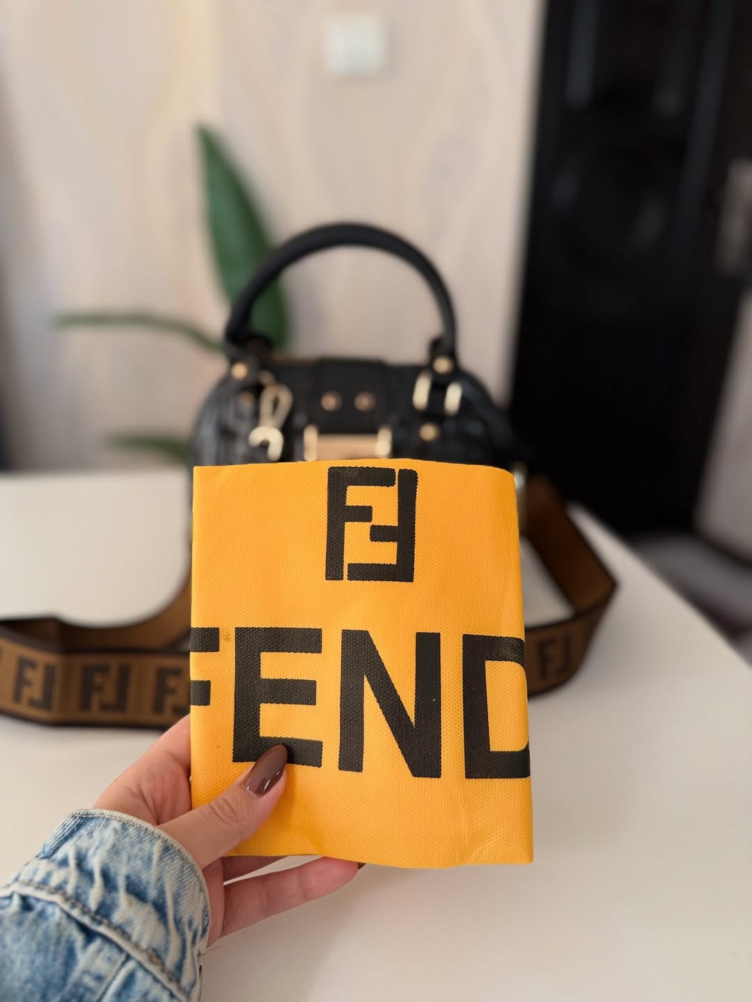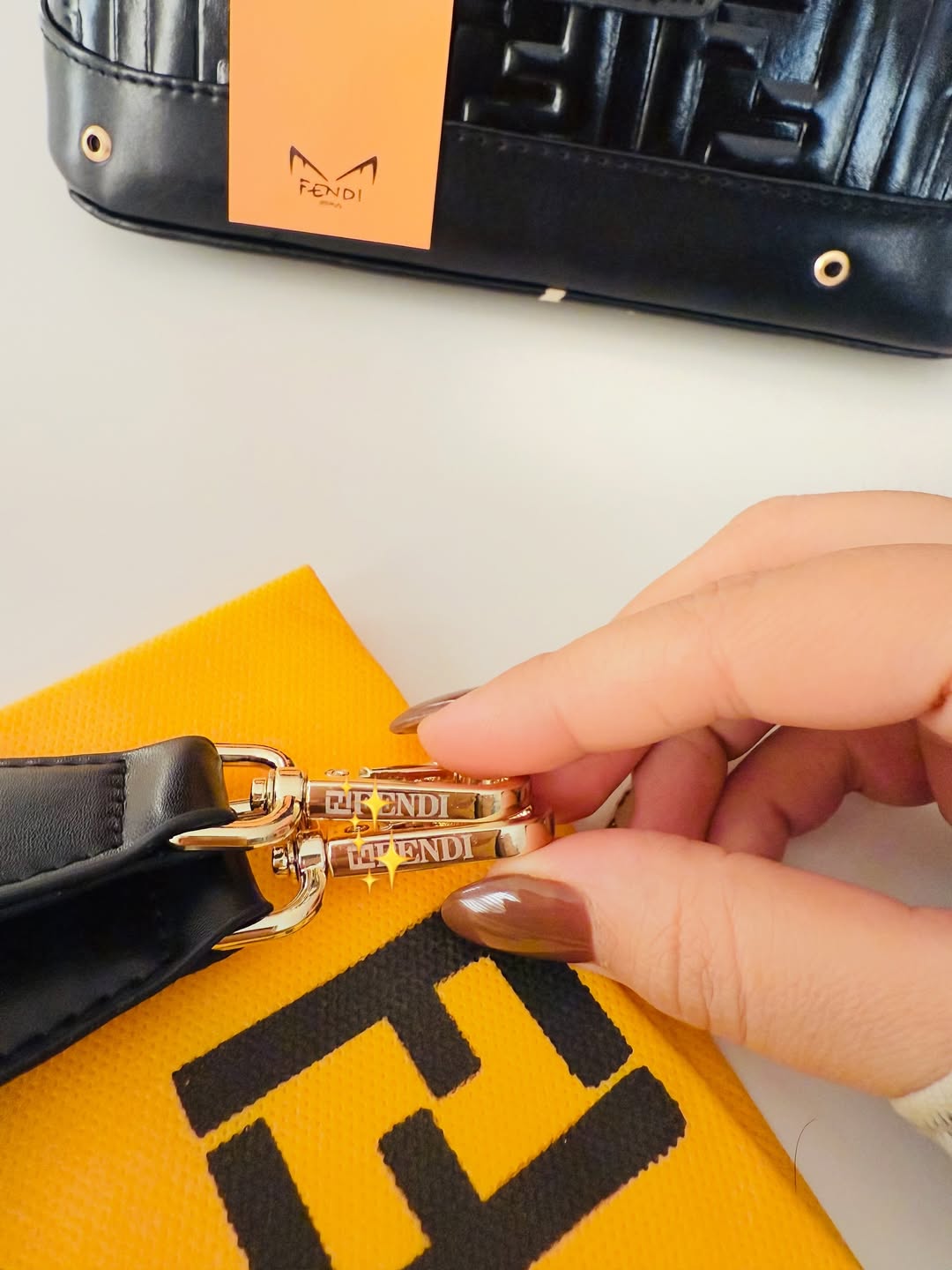 كيف فندى زيبا مناسب خانماى خوش سليقه تك زيپ ، حك برند روى تمام يراق آلات ، علاوه بر دستى بودن بند بلند پارچه اى هم داره